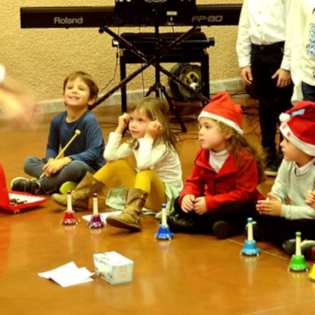 Chaque séance est différente, avec des jeux de voix chantés (comptines…), la manipulation d’objets sonores (cloches musicales, carillons, tubes Boomwhackers…), la découverte d’instruments de musique par l’écoute, le toucher et le dessin… Les enfants découvrent également les musiques du Monde.